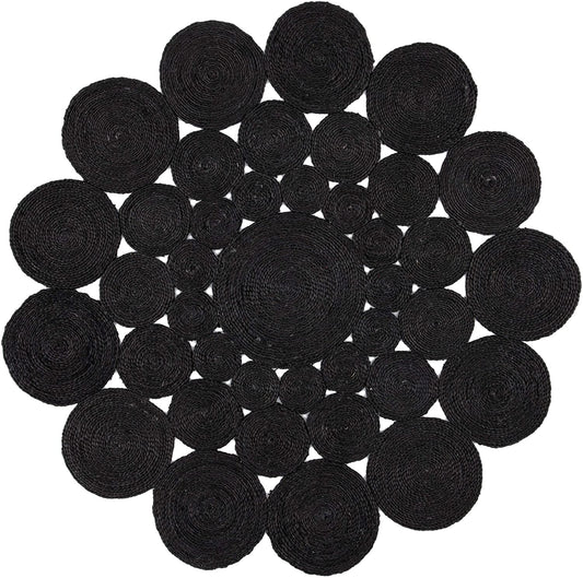 Ripaz Vogue - Floor Carpet 100% Natural Jute Hand Braided Latest Design Area Rug, Round, Black