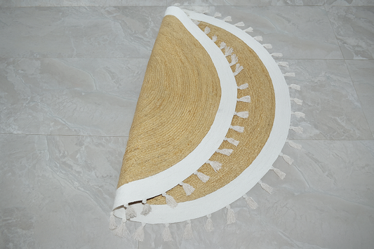 Jute Rug Round Circle Design Braided Jute Area Rug, White
