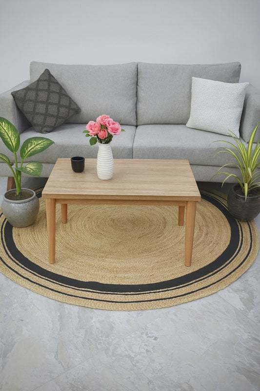 Ripaz Jute Rug Natural with Black Border Hand Woven Round Rug, Natural