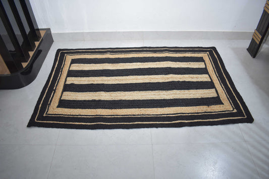 Jute Rug Natural Modern Design Braided Rectangle Area Rug, Black & Beige
