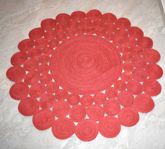 Ripaz Vogue - Floor Carpet 100% Natural Jute Hand Braided Latest Design Area Rug, Round, Red